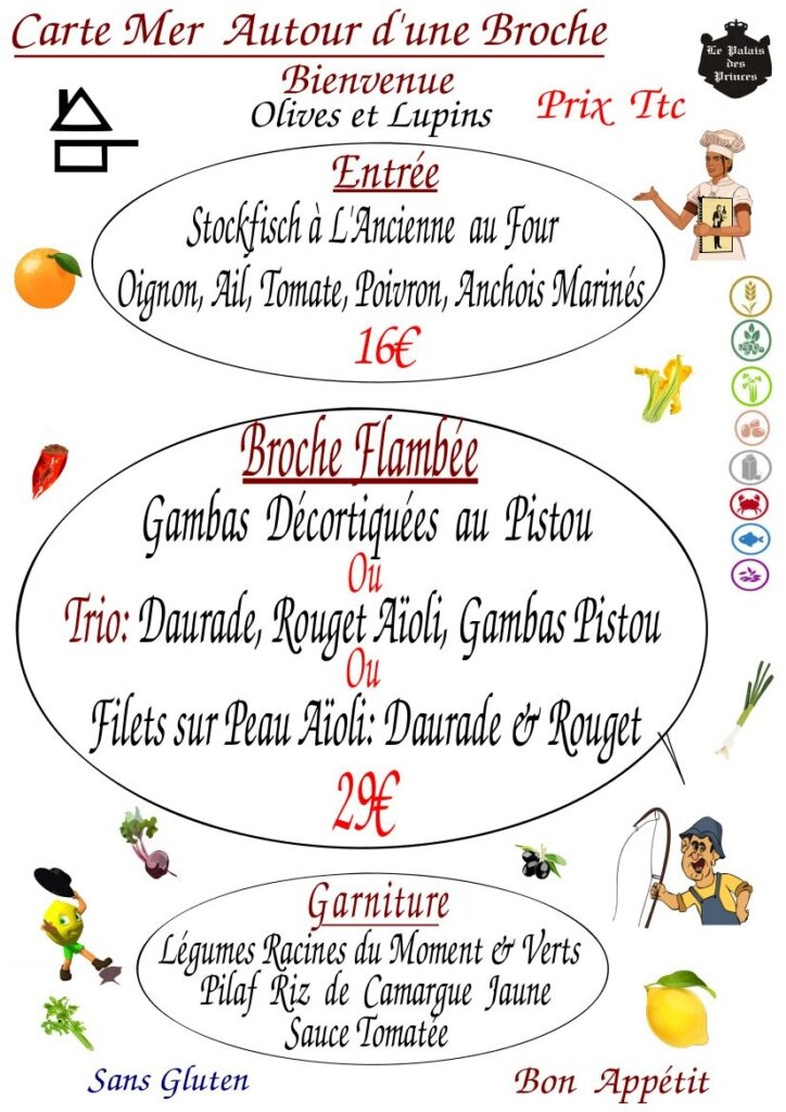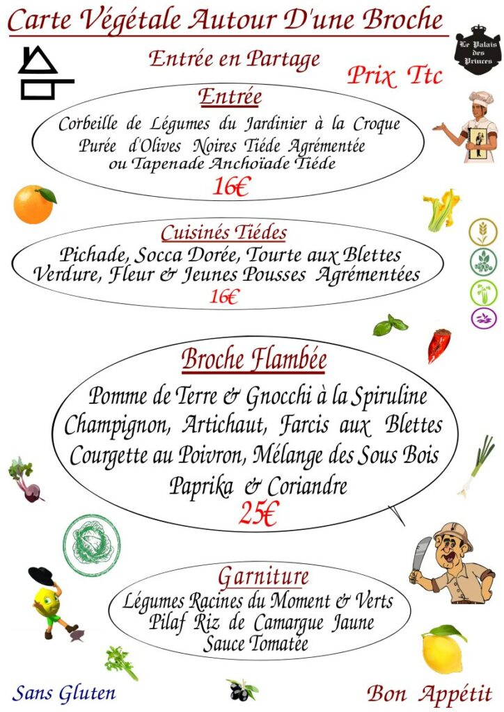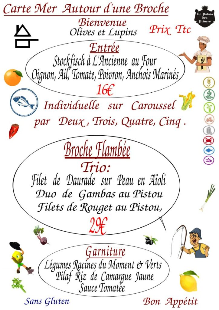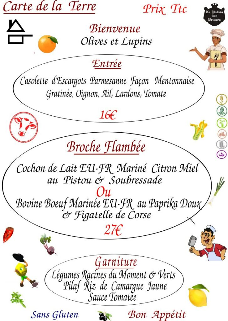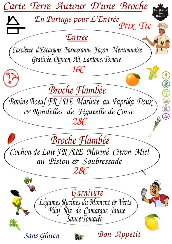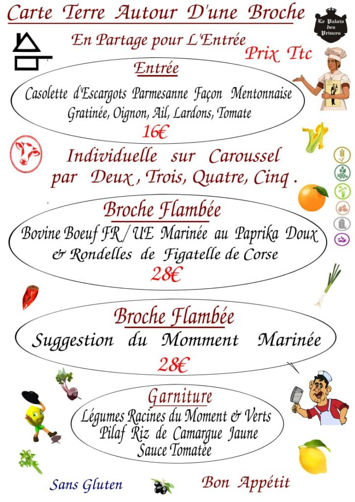 Le restaurant Le Palais des Princes, vous accueille afin de vous faire partager un repas préparé avec les parfums Mentonnais plein de convivialité grâce à son concept de broches suspendues : le carrousel.